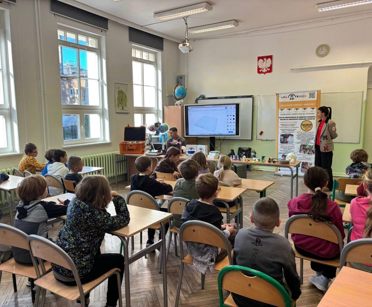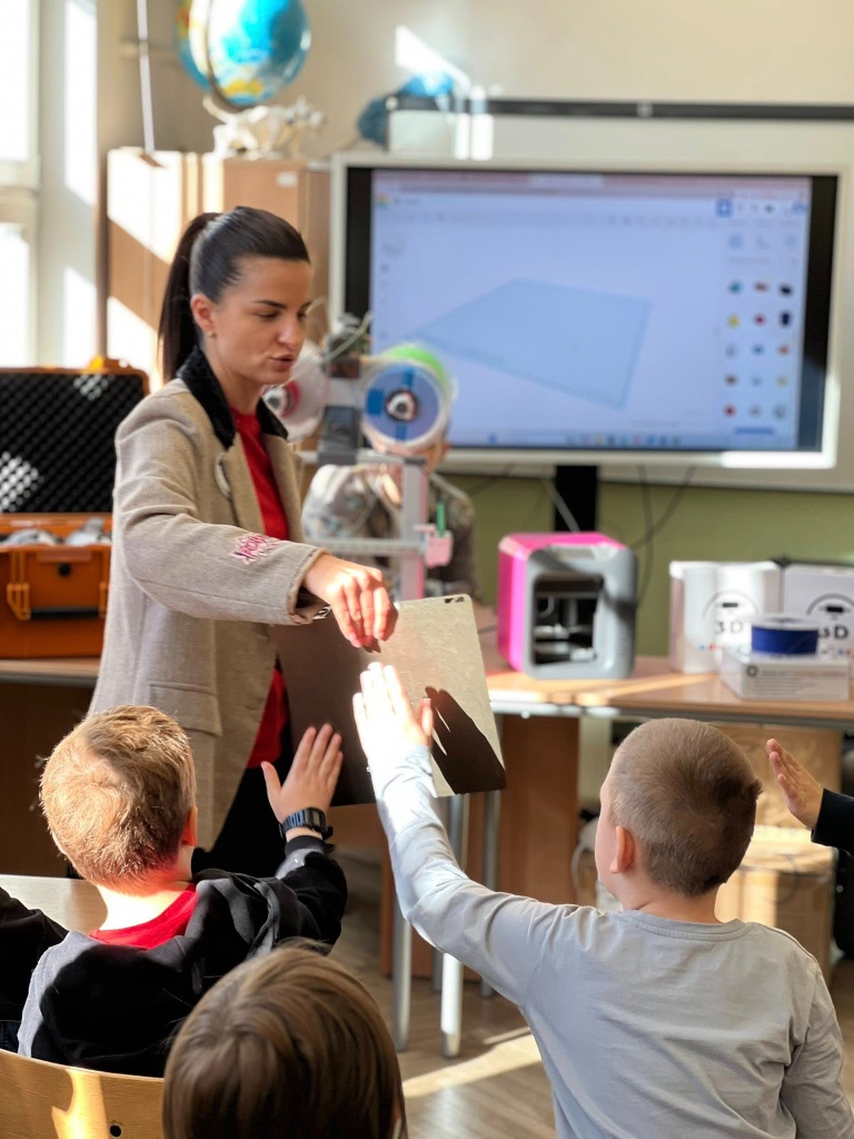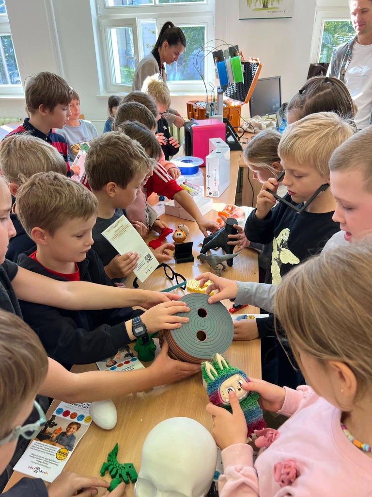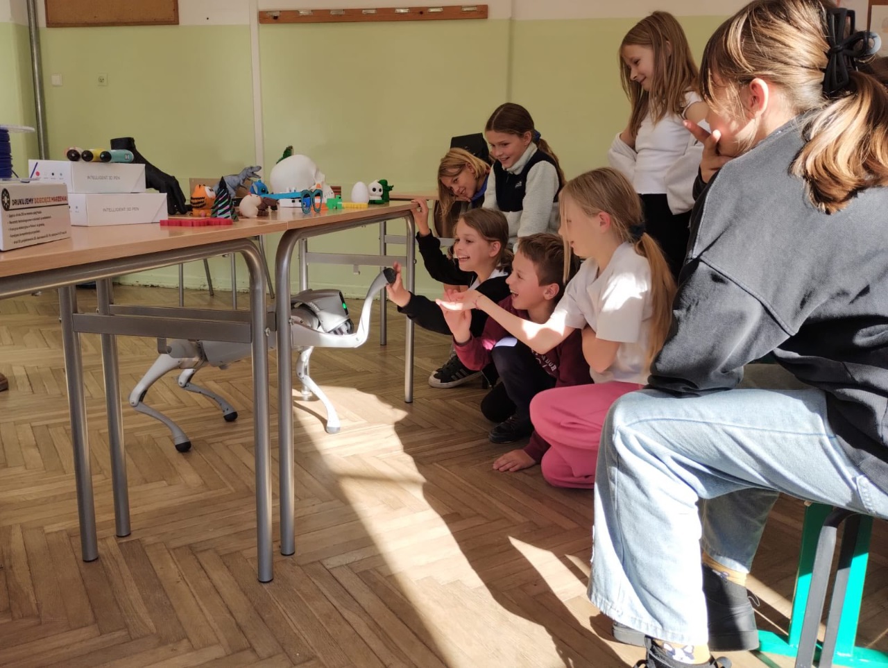 Uczniowie zobaczyli między innymi, jak działają drukarki, które potrafią tworzyć kolorowe, trójwymiarowe obiekty z różnych materiałów, projektowanie 3D, drukowanie czekoladą, okulary VR, długopisy 3D. Dowiedzieli się, czym jest sztuczna inteligencja(AI) i jak zmienia nasze życie