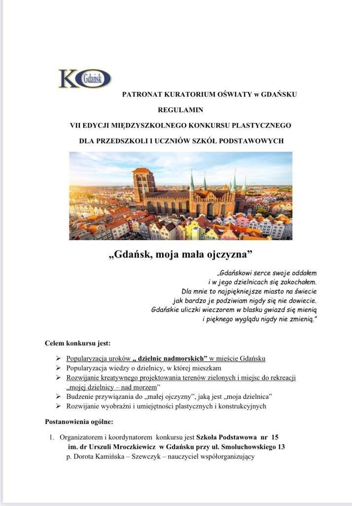 Zachęcamy uczniów przedszkoli oraz szkół podstawowych do udziału w konkursie "Gdańsk, moja mała ojczyzna".