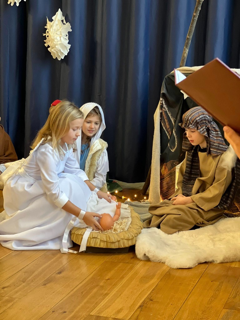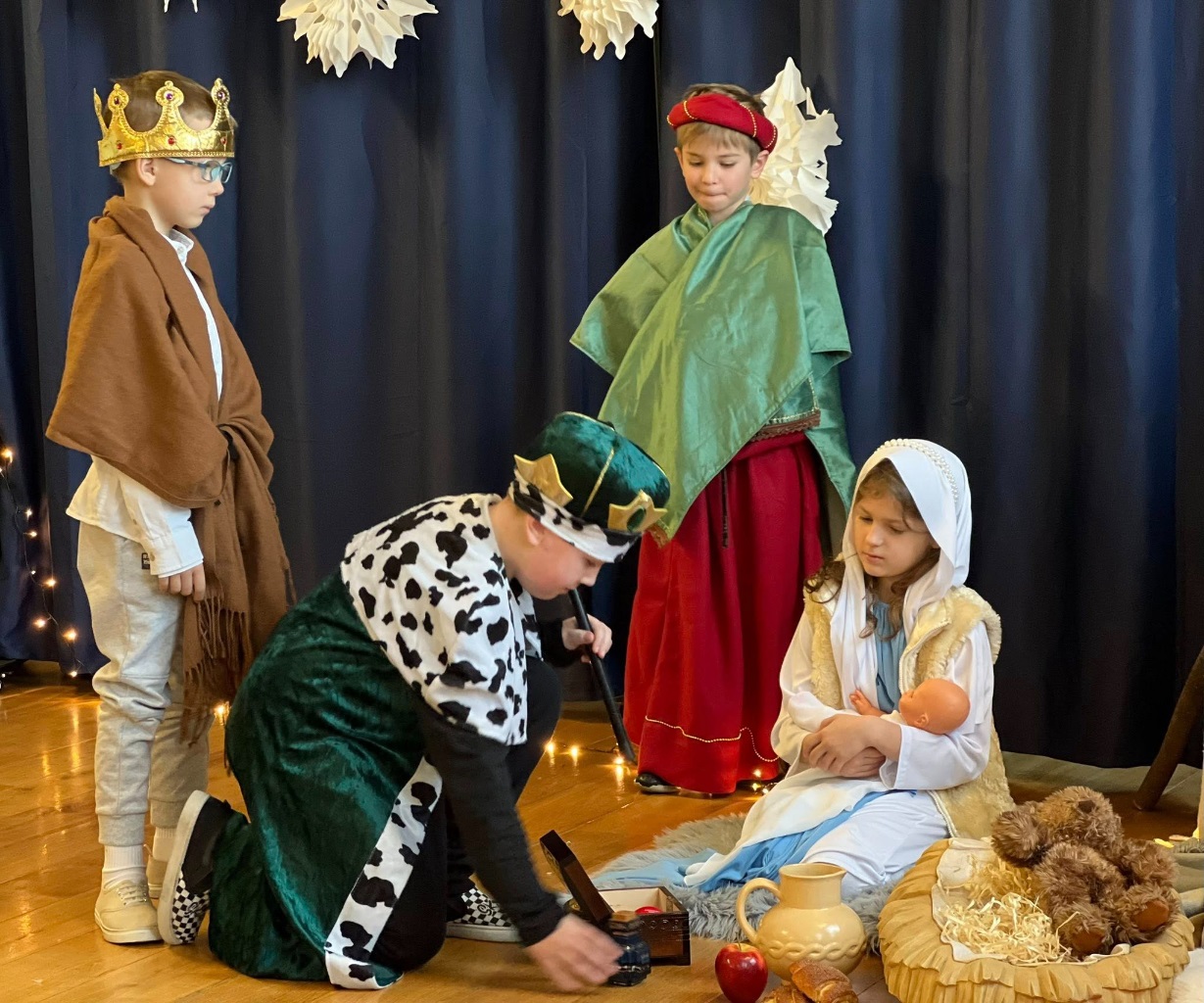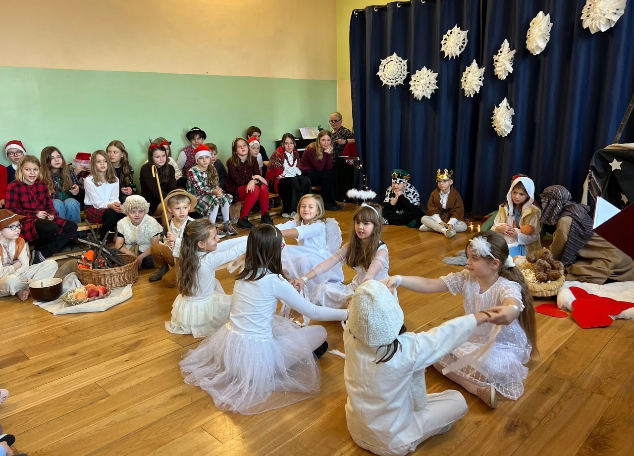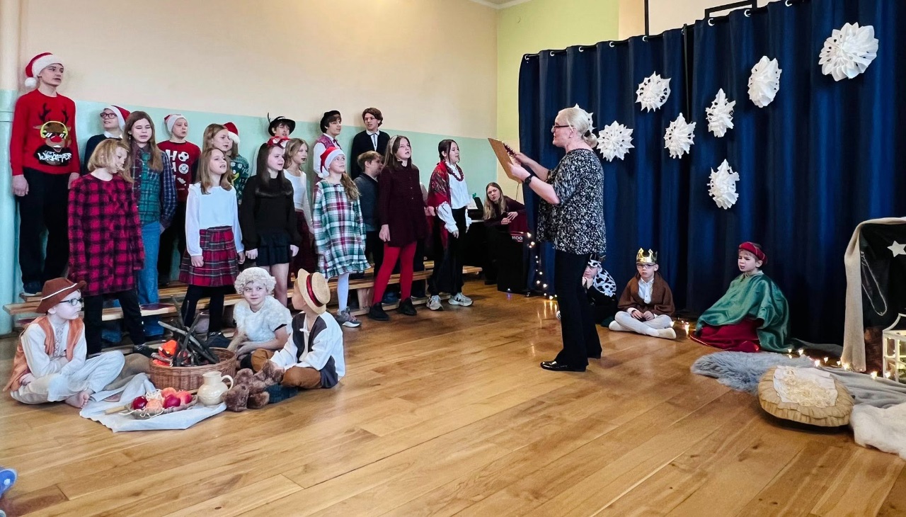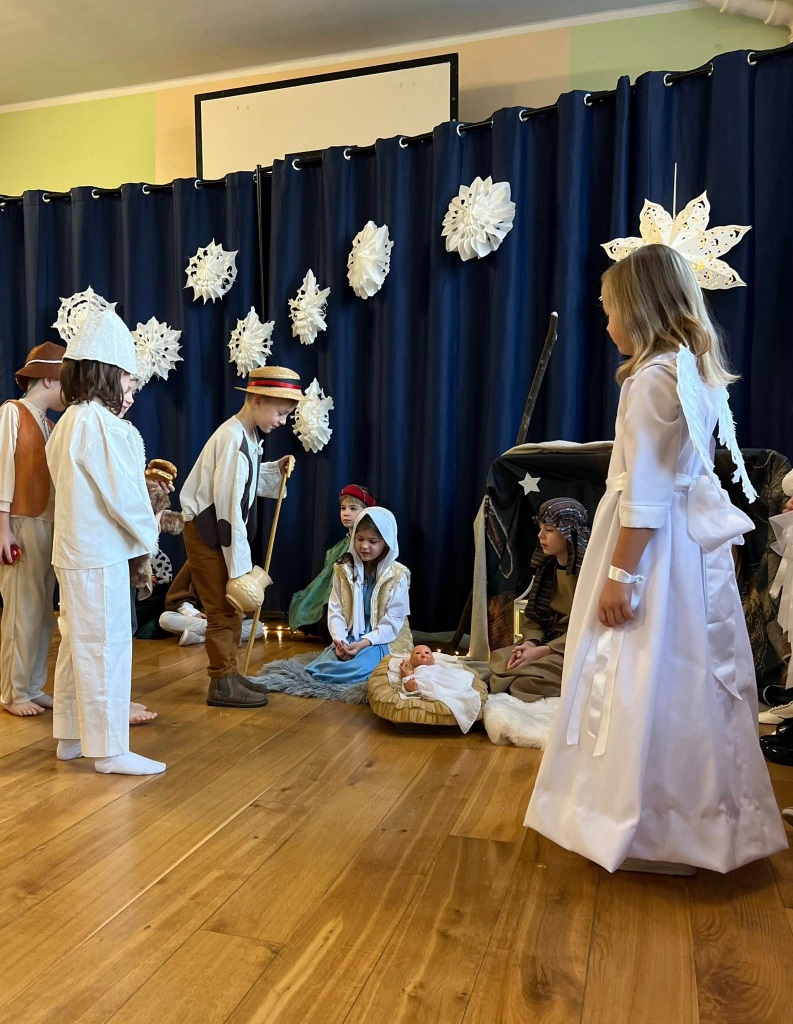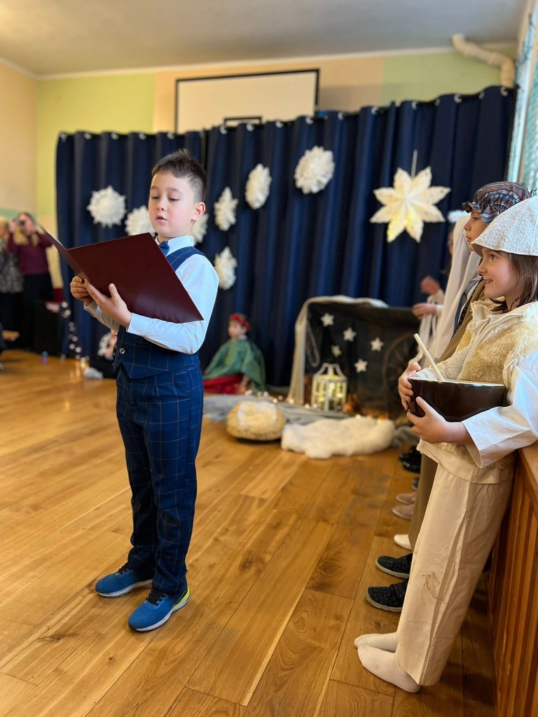 Jasełka szkolne w wykonaniu klasy II A oraz szkolnego chóru.