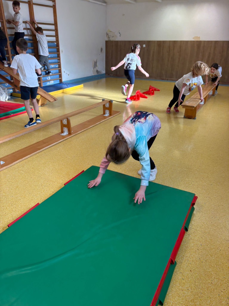 Klasa 1a nie zwalnia tempa! W ramach programu „Mały Mistrz” uczniowie wzięli udział w kolejnych zajęciach prowadzonych przez pana Krzysztofa. Tym razem skupili się na doskonaleniu umiejętności gimnastycznych oraz rozwijaniu sprawności ruchowej – było aktywnie, radośnie i z dużym zaangażowaniem! ![]()