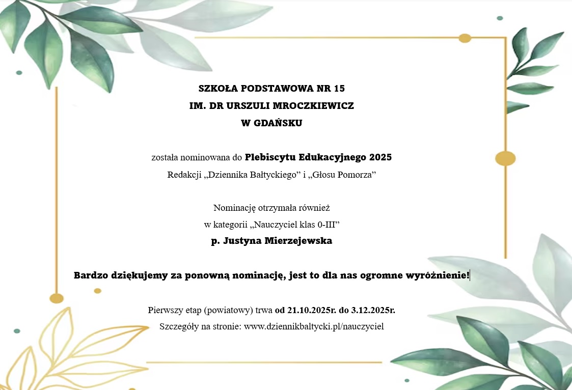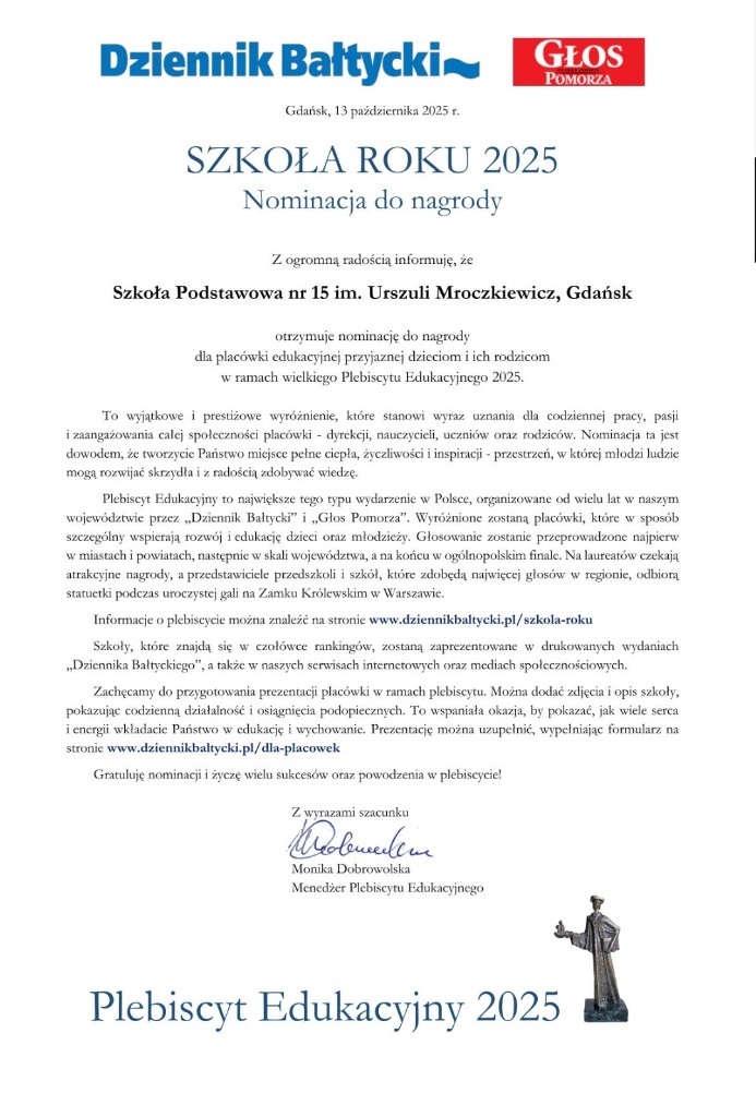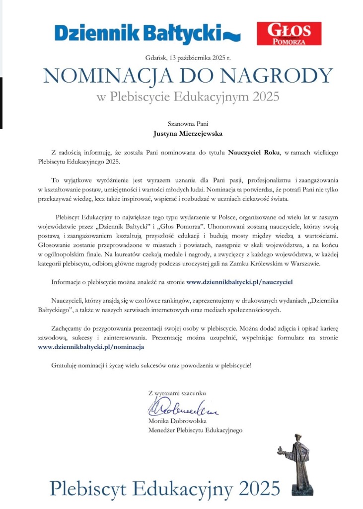 Nasza Szkoła została nominowana do Plebiscytu Edukacyjnego 2025.